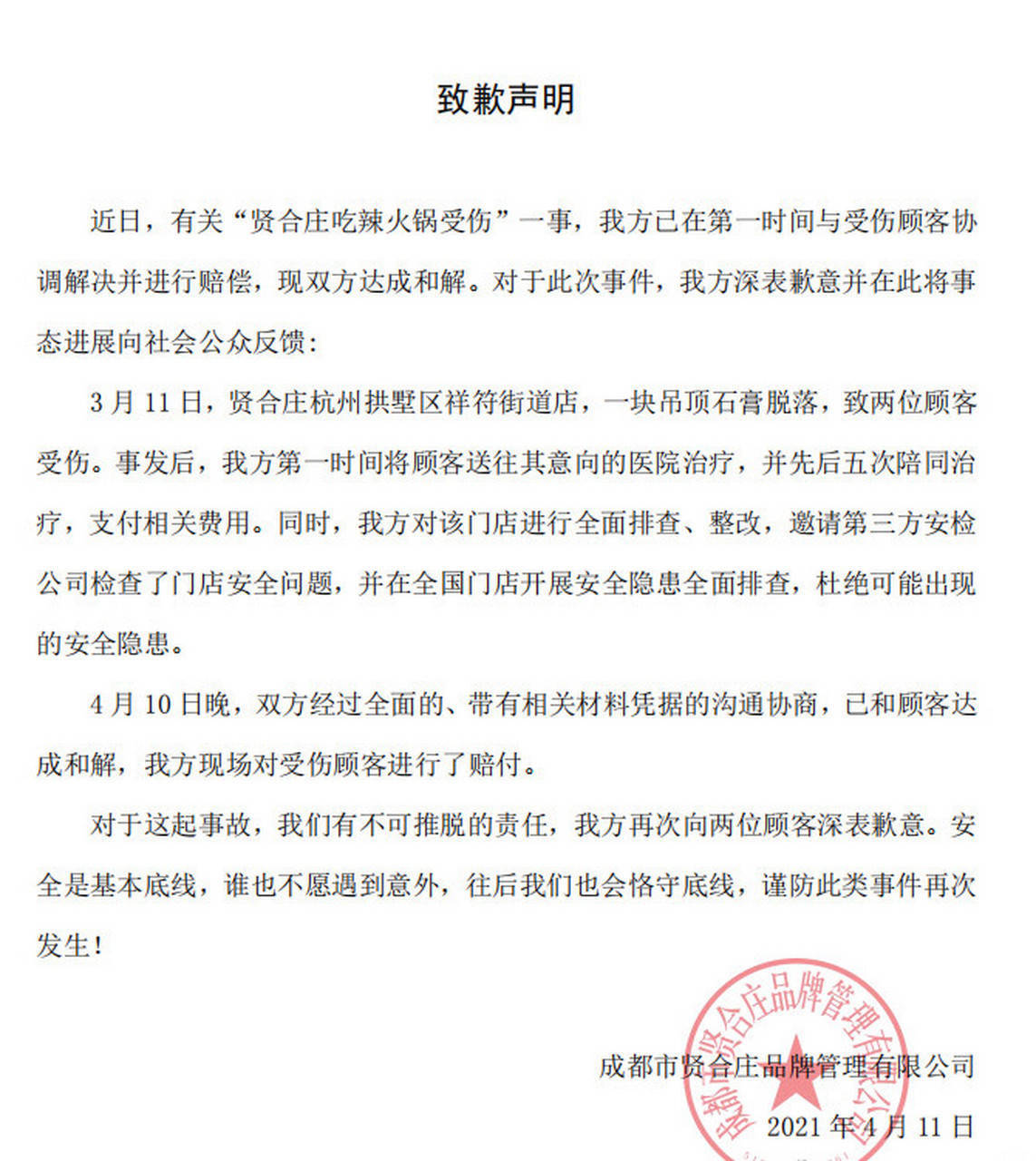 更让人气愤的是网友扒出的「内幕」:陈赫早在2023年就转让了贤合庄大部分股份,现在只是挂名股东。但出事当天,他的微博仍在宣传新店开业。有前员工爆料:「加盟店为省成本,半年没检修过天花板,消防设施都是摆设。」而去年3月,这家店就因「火锅里吃出活虫」被投诉过。